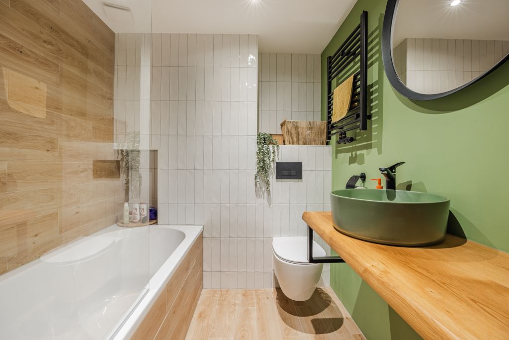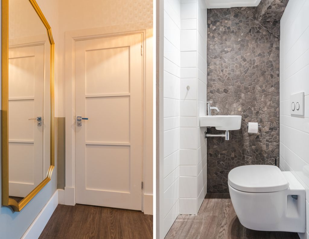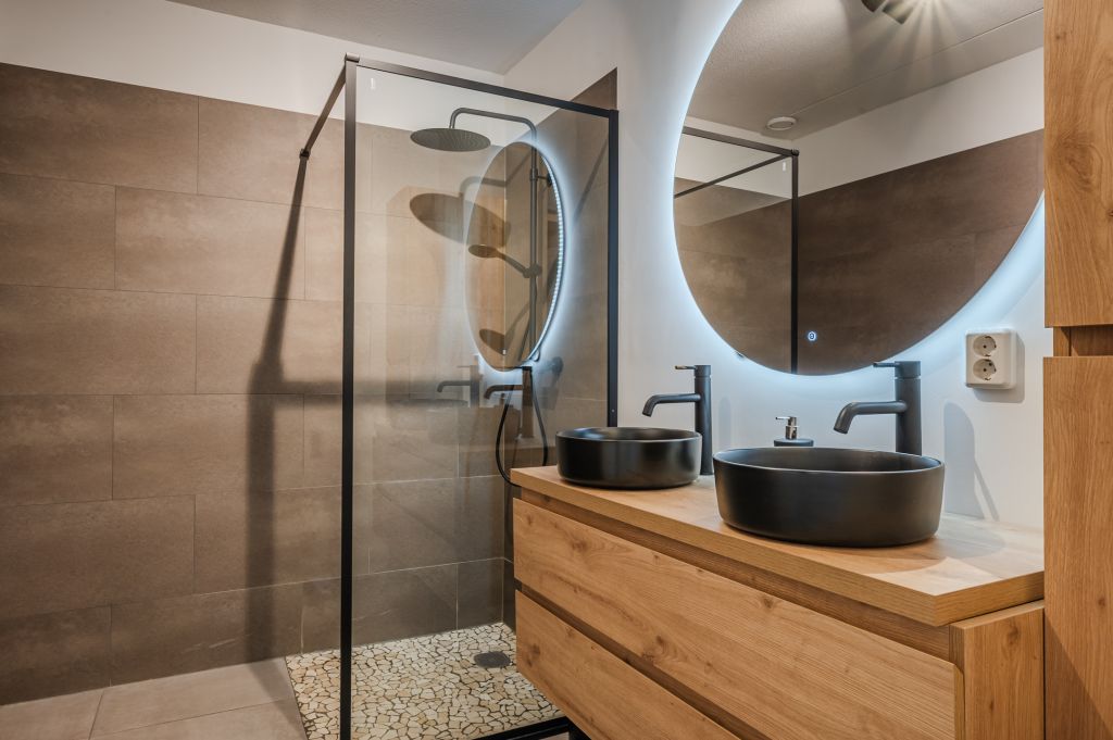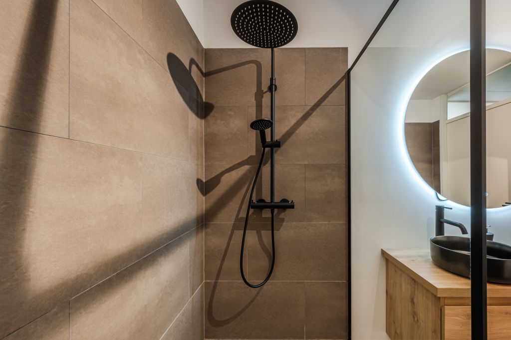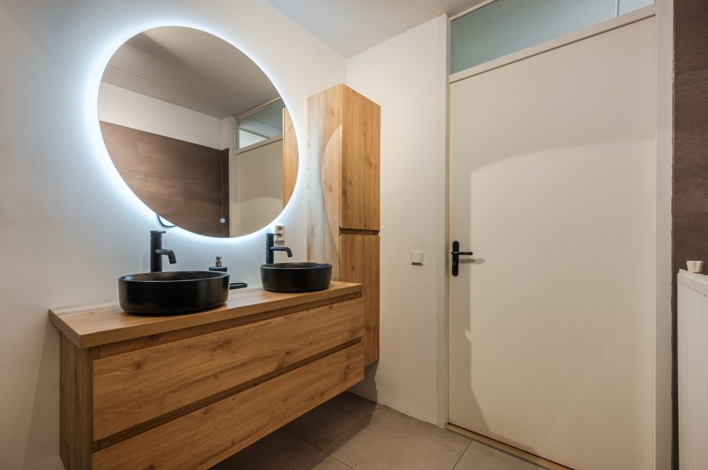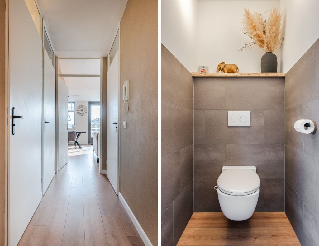 De begane grond is voorzien van een plavuizen vloer met vloerverwarming en spachtelputz wandafwerking.