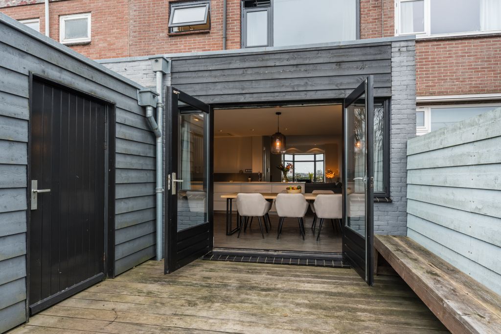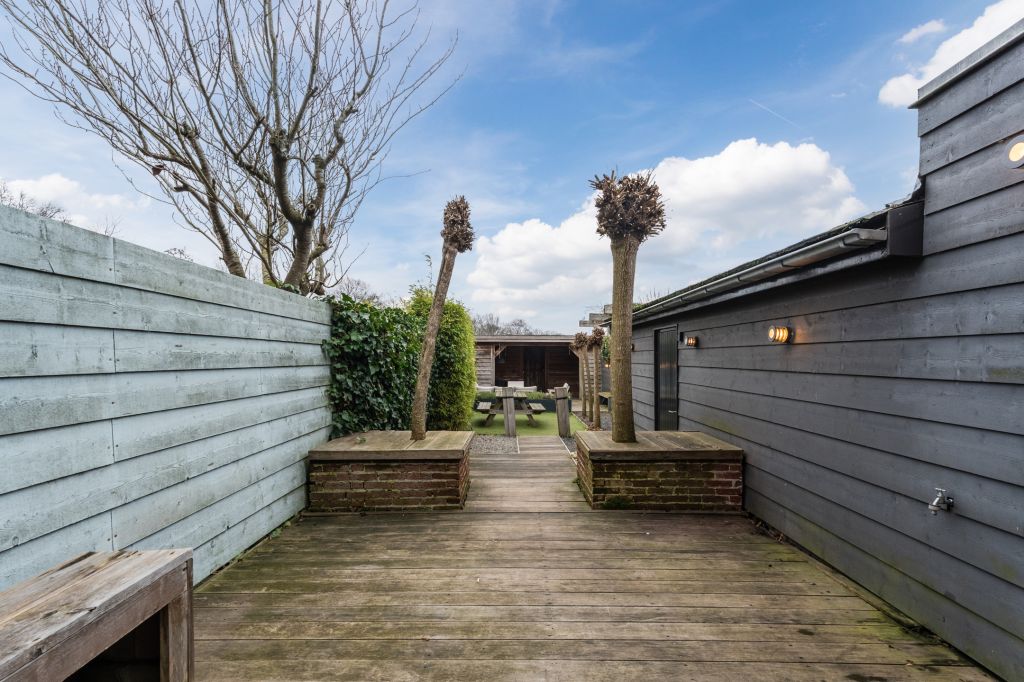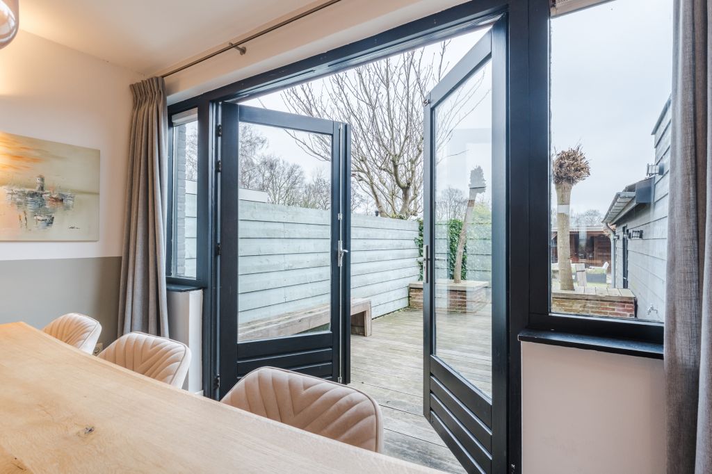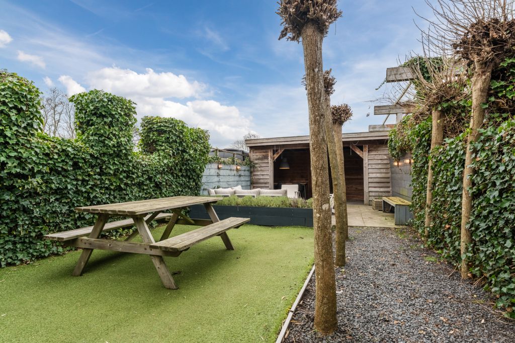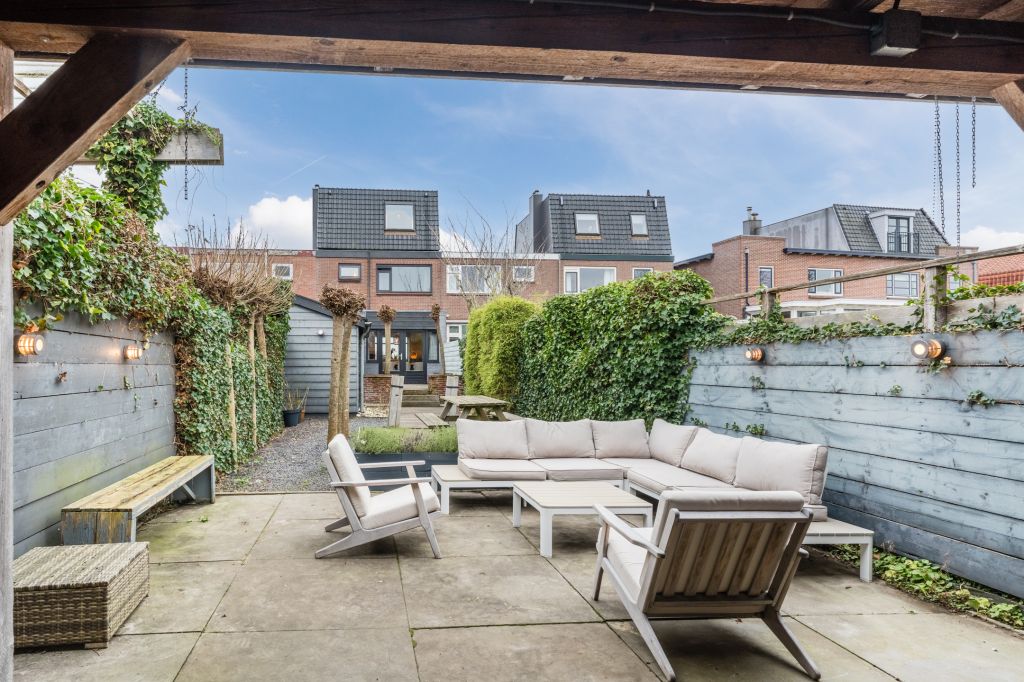 De achtertuin is verzorgd, gelegen op het zuiden en voorzien van een aangebouwde veranda, waar je ’s zomers tot laat van de zon kunt genieten!