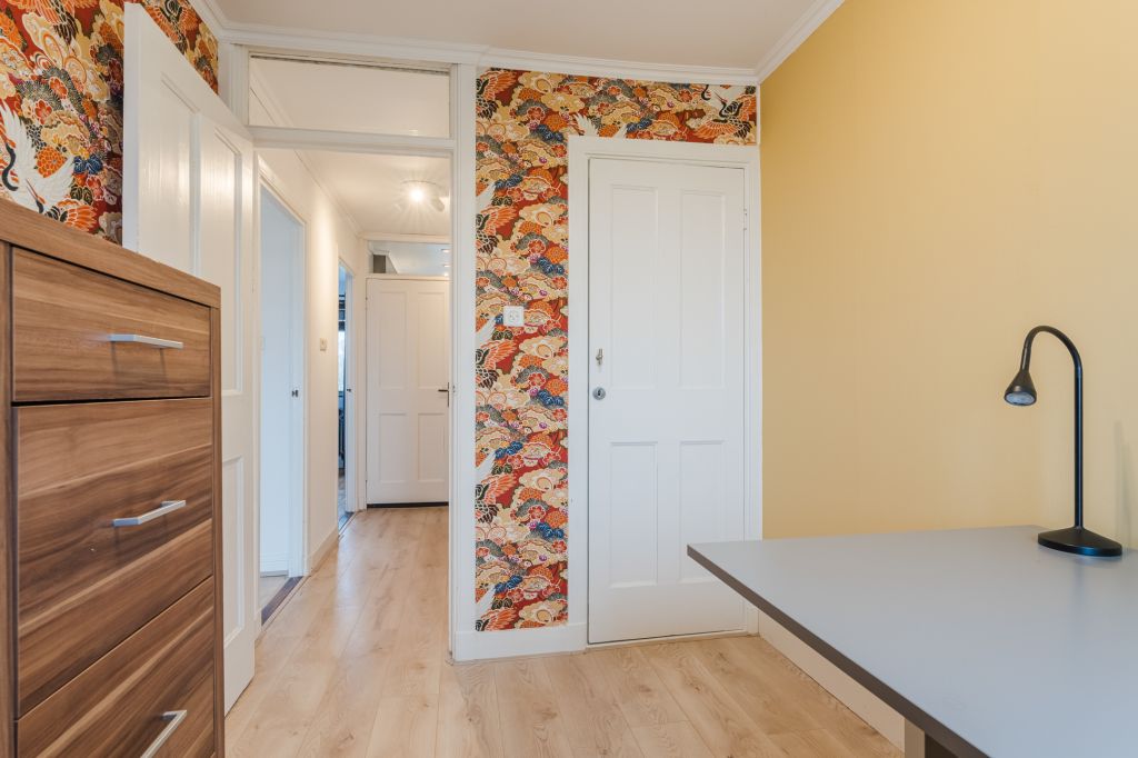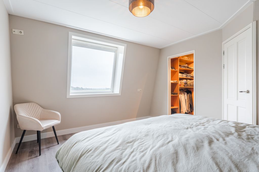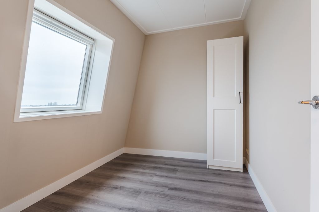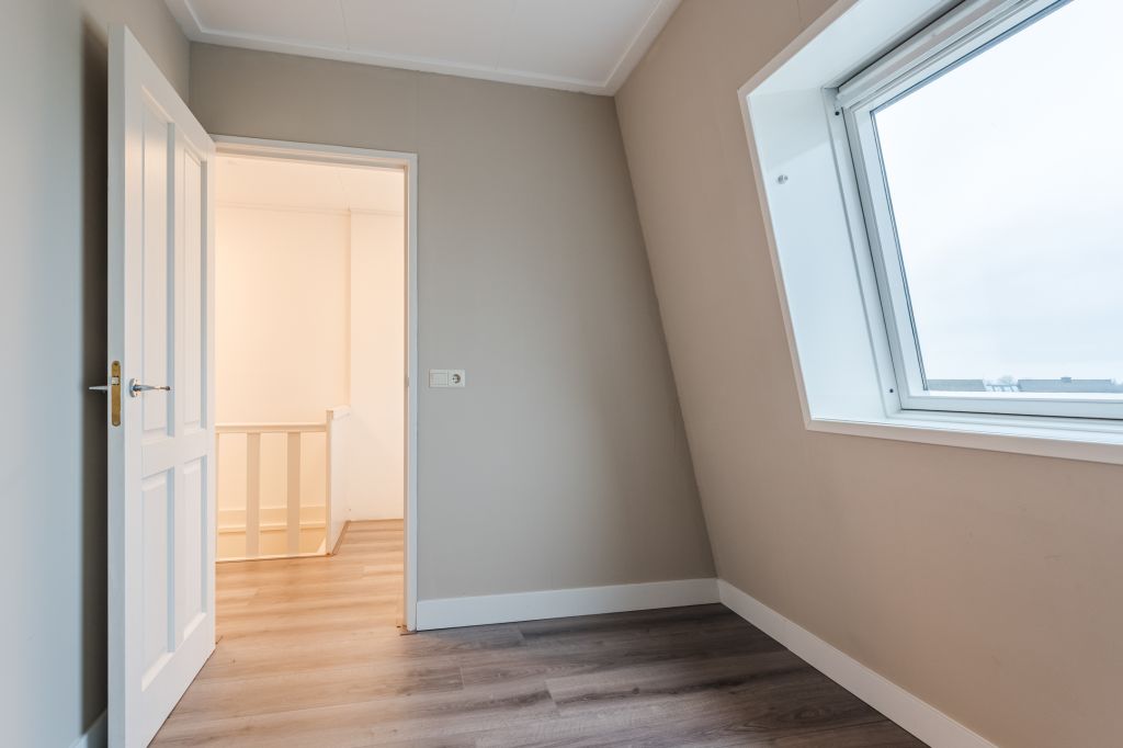 Vaste trap naar de 2e verdieping. 4e ruime slaapkamer aan de achterzijde met een vaste kast. Aan de voorzijde een riante ruimte, waar gemakkelijk een ruime 5e slaapkamer gecreëerd kan worden. Ook is het mogelijk om een dakkapel te plaatsen. Verder is er op deze verdieping veel bergruimte beschikbaar onder de knieschotten. In één van de vaste kasten, naast de trap, bevindt zich de mechanische ventilatie unit.