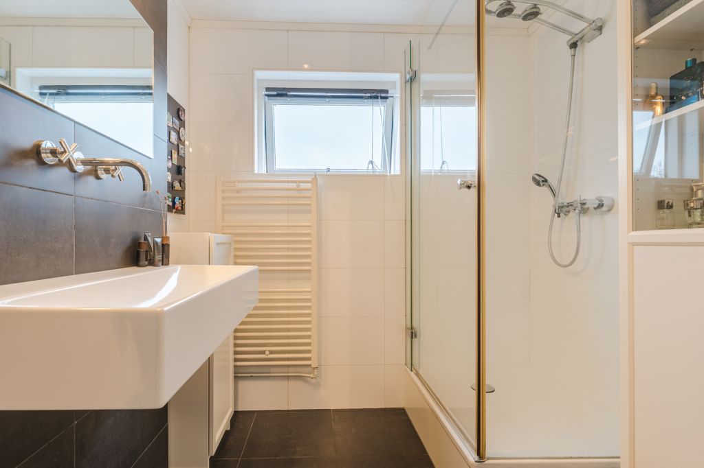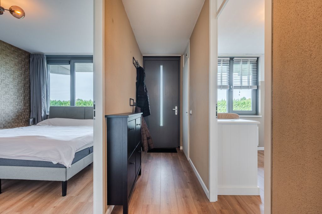Overloop met toegang naar 3 slaapkamers. De ouderslaapkamer ligt aan de achterzijde van de woning. Daarnaast een geheel betegelde badkamer met vloerverwarming voorzien van alle gemakken, zoals een ligbad, aparte douchecabine, 2e toilet en een wastafelmeubel.