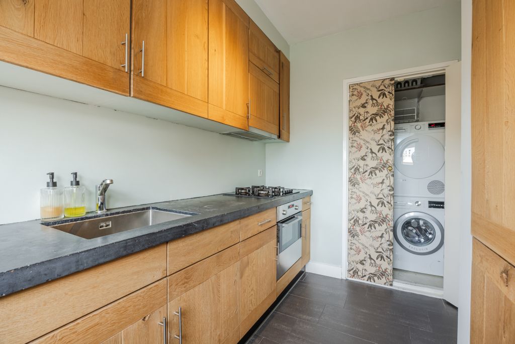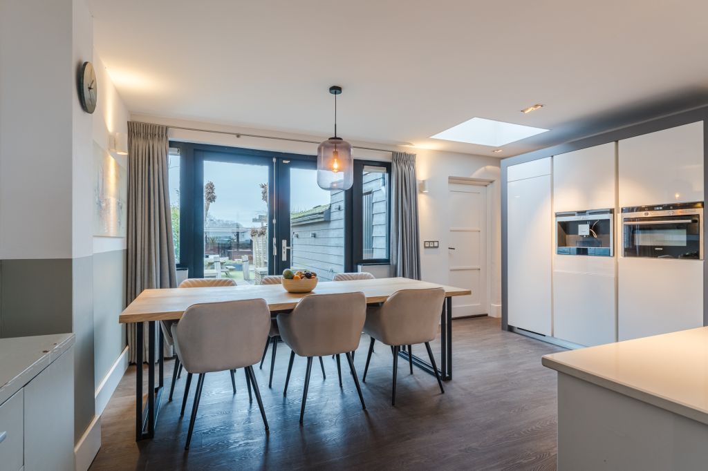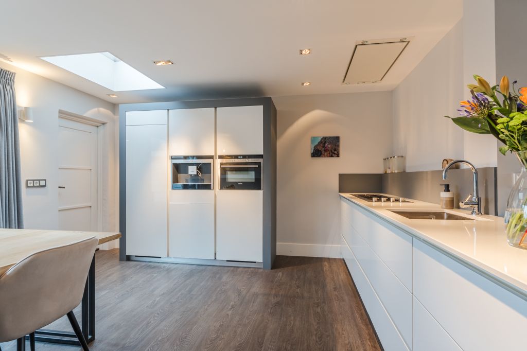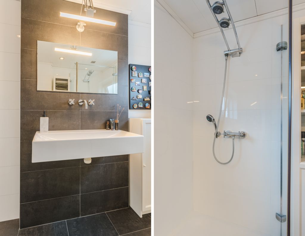 De garage is bereikbaar via zowel de voor- als achtertuin. En binnendoor vanuit de keuken. De garage is aan de achterzijde extra breed, met hier de opstelling van de CV-ketel, wasmachine en droger. Tevens is er verwarming aanwezig en een wastafel met koud water. Een gedeelte van de garage kan desgewenst gemakkelijk bij de woning betrokken worden. Bijvoorbeeld voor een grote woonkeuken, kantoor of tuinkamer.
