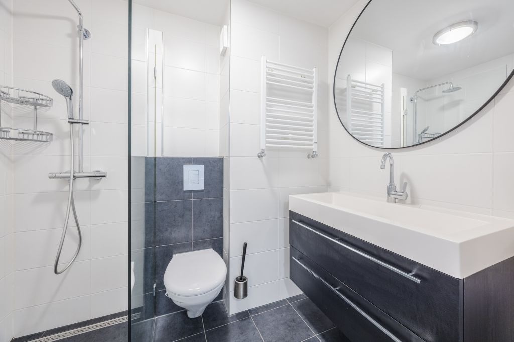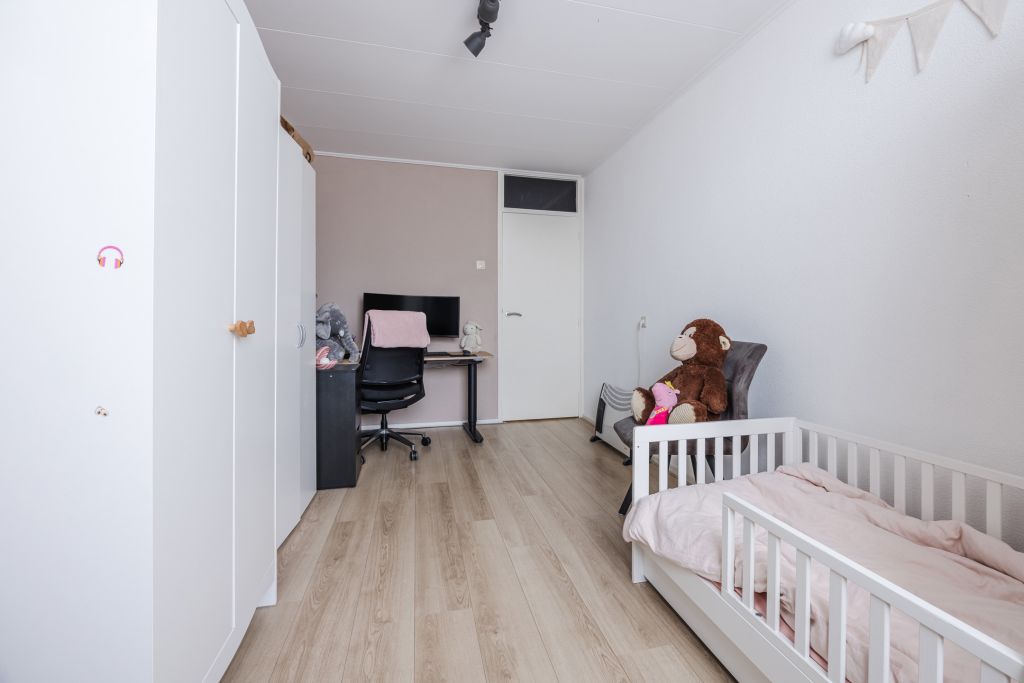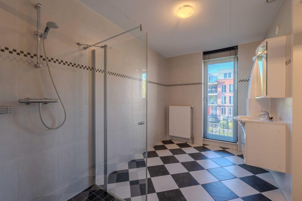 Op de eerste verdieping bevinden zich drie comfortabele slaapkamers, stuk voor stuk licht en praktisch ingedeeld. De badkamer is modern uitgevoerd met een inloopdouche, een mooi wastafelmeubel en een vrijdragend toilet. De fraaie laminaatvloer die over de hele verdieping doorloopt, zorgt voor een mooie, rustige basis.
