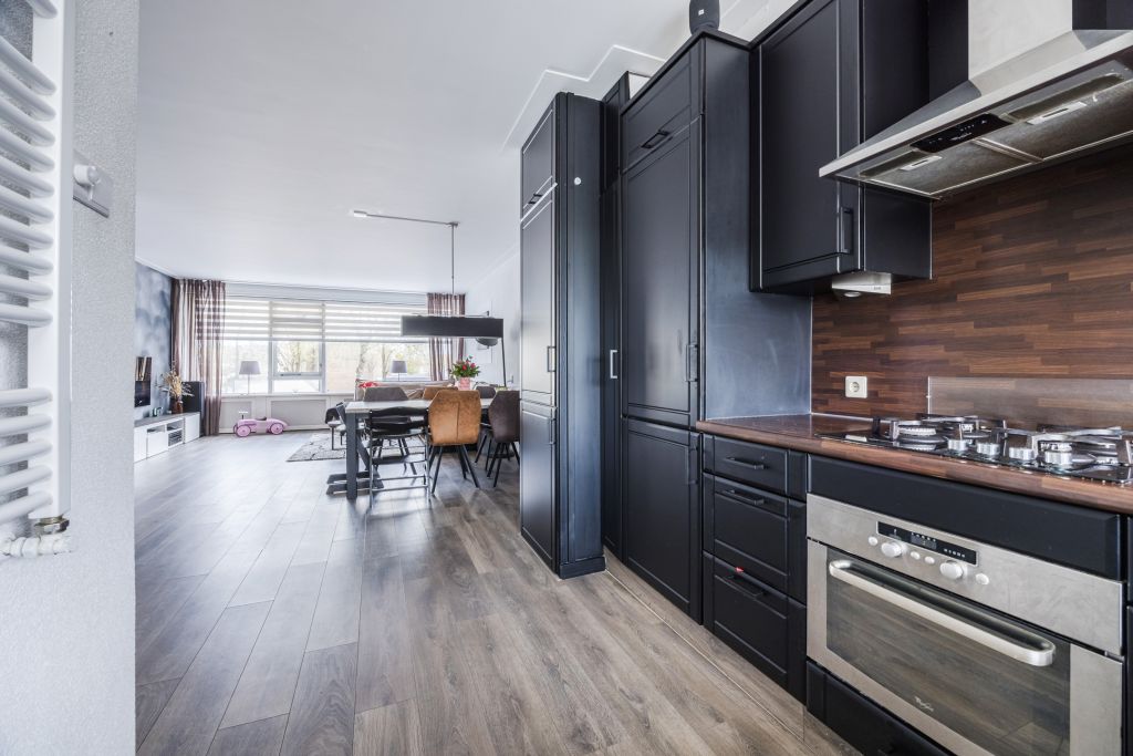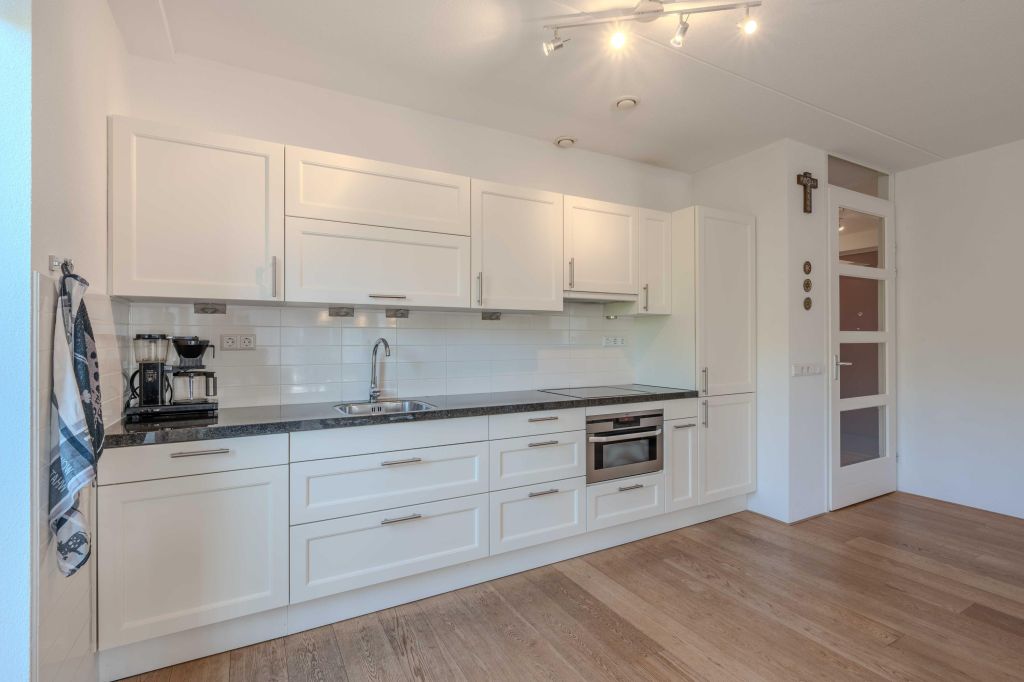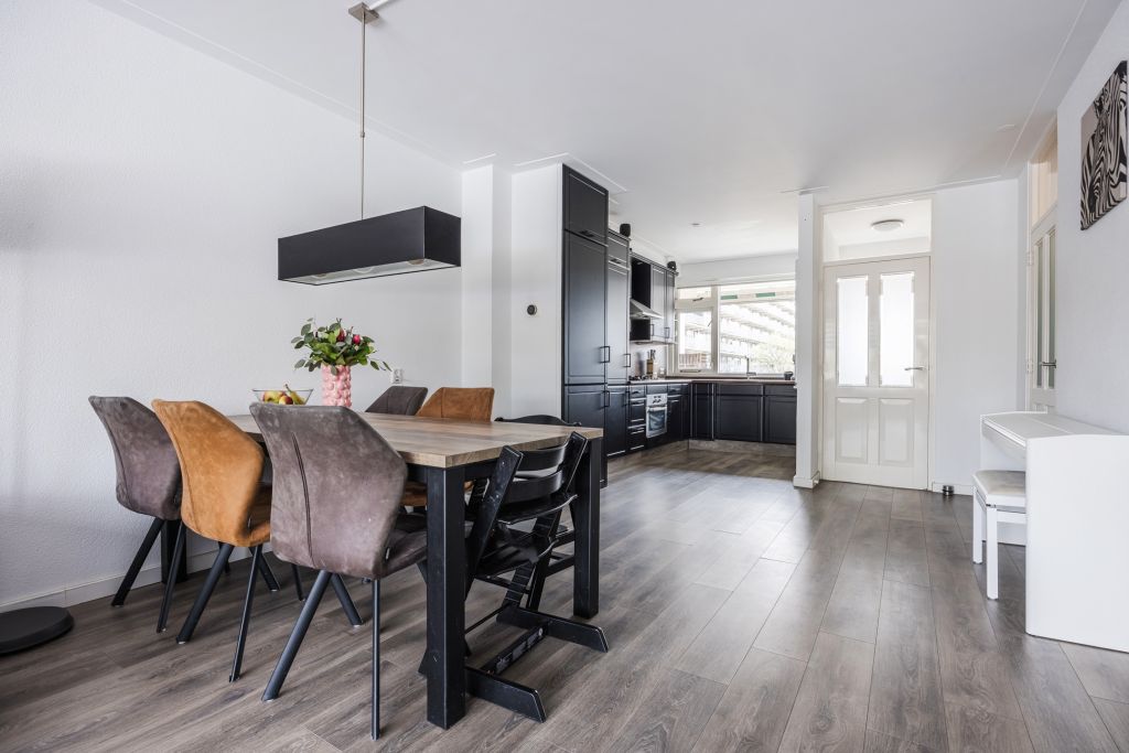 Bij binnenkomst op de begane grond vallen meteen de lichte woonkamer en de grote ramen aan de achterzijde op, waardoor de leefruimte een prettige open sfeer krijgt. De halfopen keuken is uitgerust met inbouwapparatuur en biedt directe toegang tot de zonnige tuin, waar je in alle rust kunt genieten.