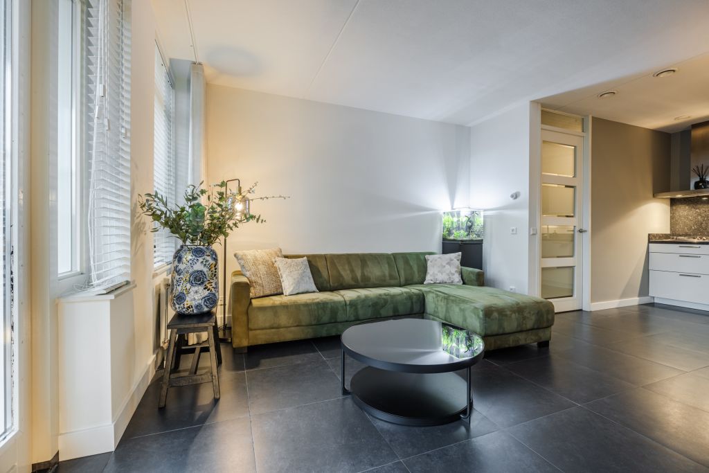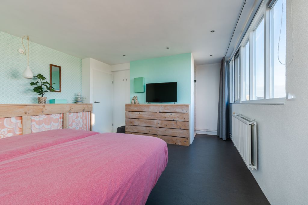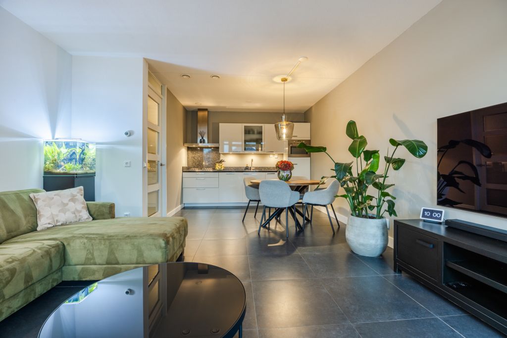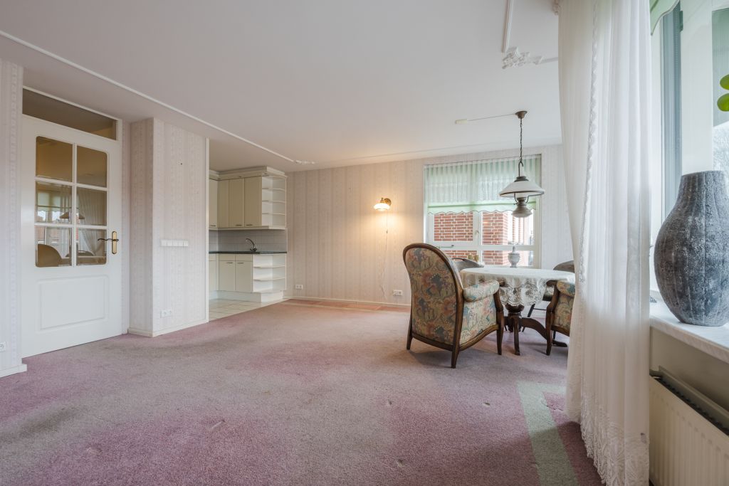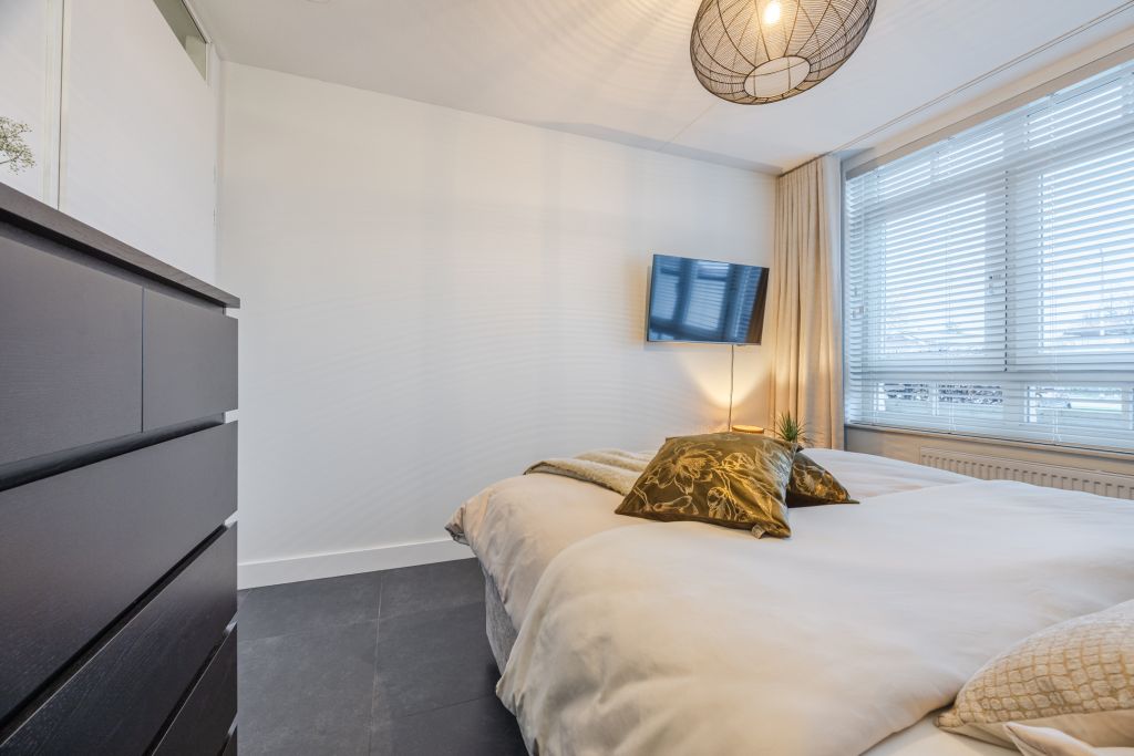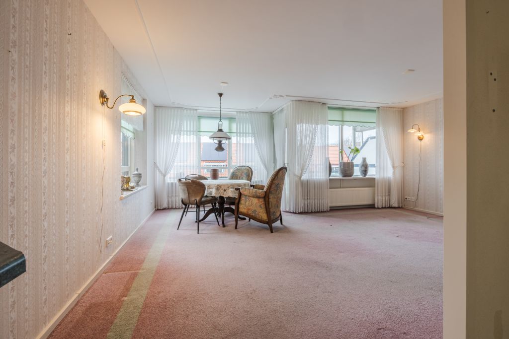 Entree, hal met garderobe, meterkast, modern toilet en provisiekast. Zeer ruime woonkamer (ca. 56 m²) met toegang tot een zonnig balkon. Half open keuken (welke gemakkelijk geheel bij de woonkamer betrokken kan worden) voorzien van diverse inbouwapparatuur. Riante hoofdslaapkamer met toegang tot de badkamer. De moderne geheel betegelde badkamer is voorzien van een inloopdouche, wastafelmeubel en aansluiting voor de wasapparatuur.