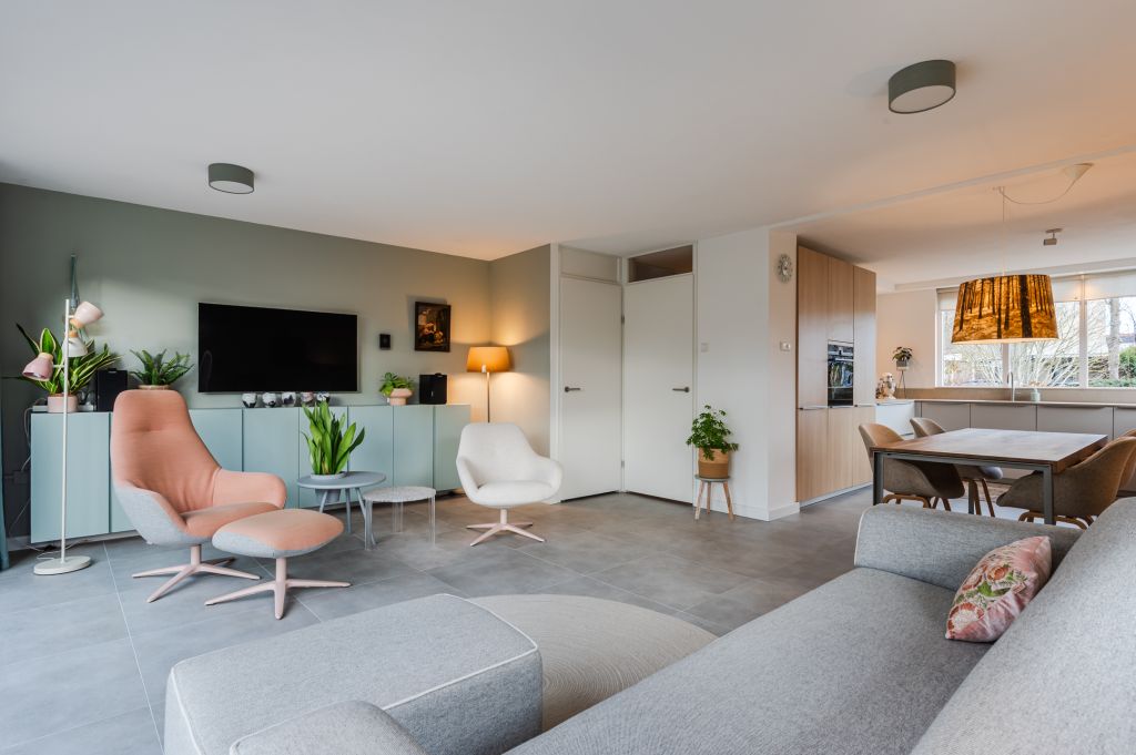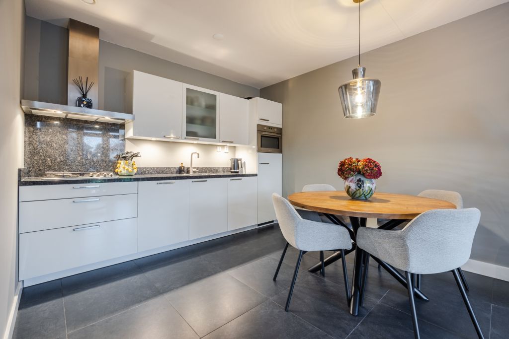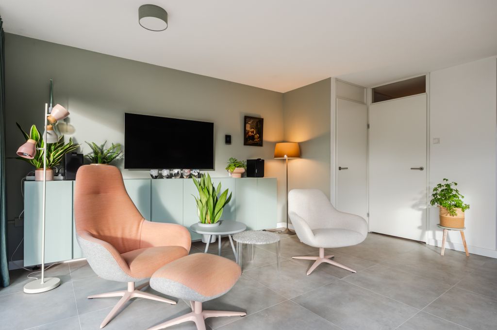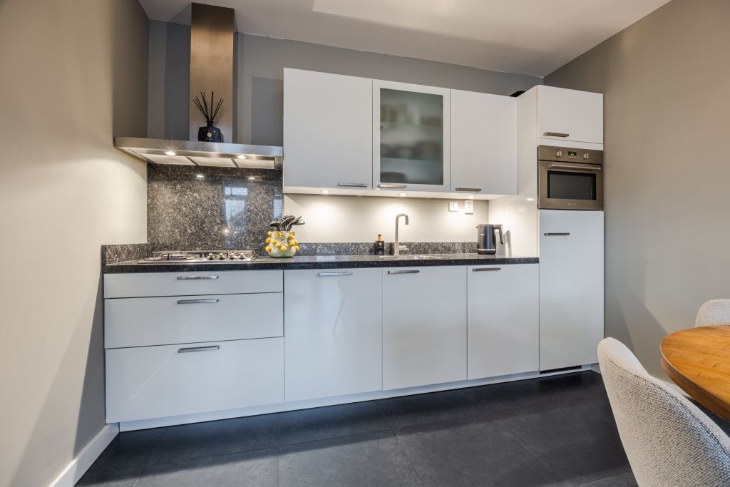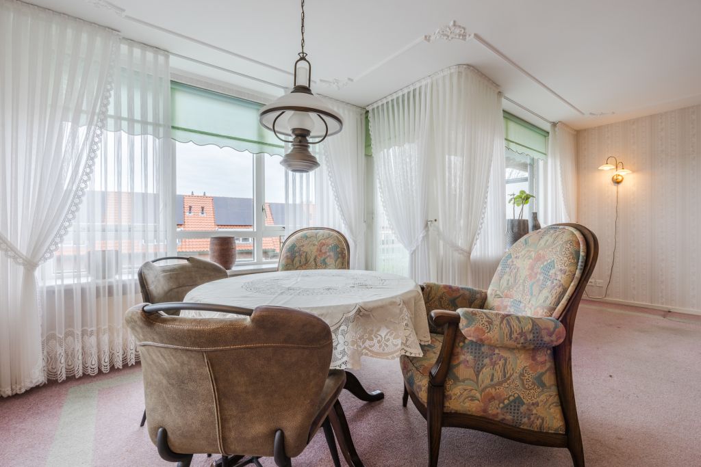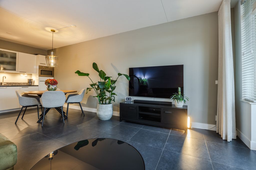 Entree, hal met garderobe, meterkast, modern toilet en provisiekast. Zeer ruime woonkamer (ca. 56 m²) met toegang tot een zonnig balkon. Half open keuken (welke gemakkelijk geheel bij de woonkamer betrokken kan worden) voorzien van diverse inbouwapparatuur. Riante hoofdslaapkamer met toegang tot de badkamer. De moderne geheel betegelde badkamer is voorzien van een inloopdouche, wastafelmeubel en aansluiting voor de wasapparatuur.