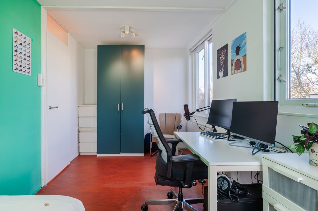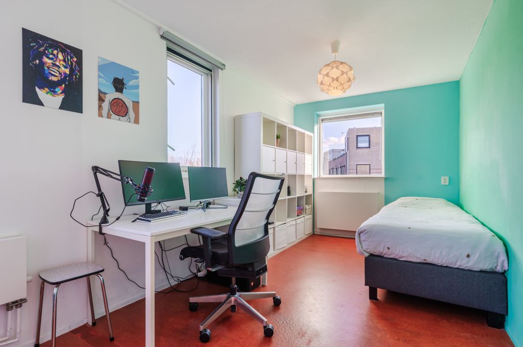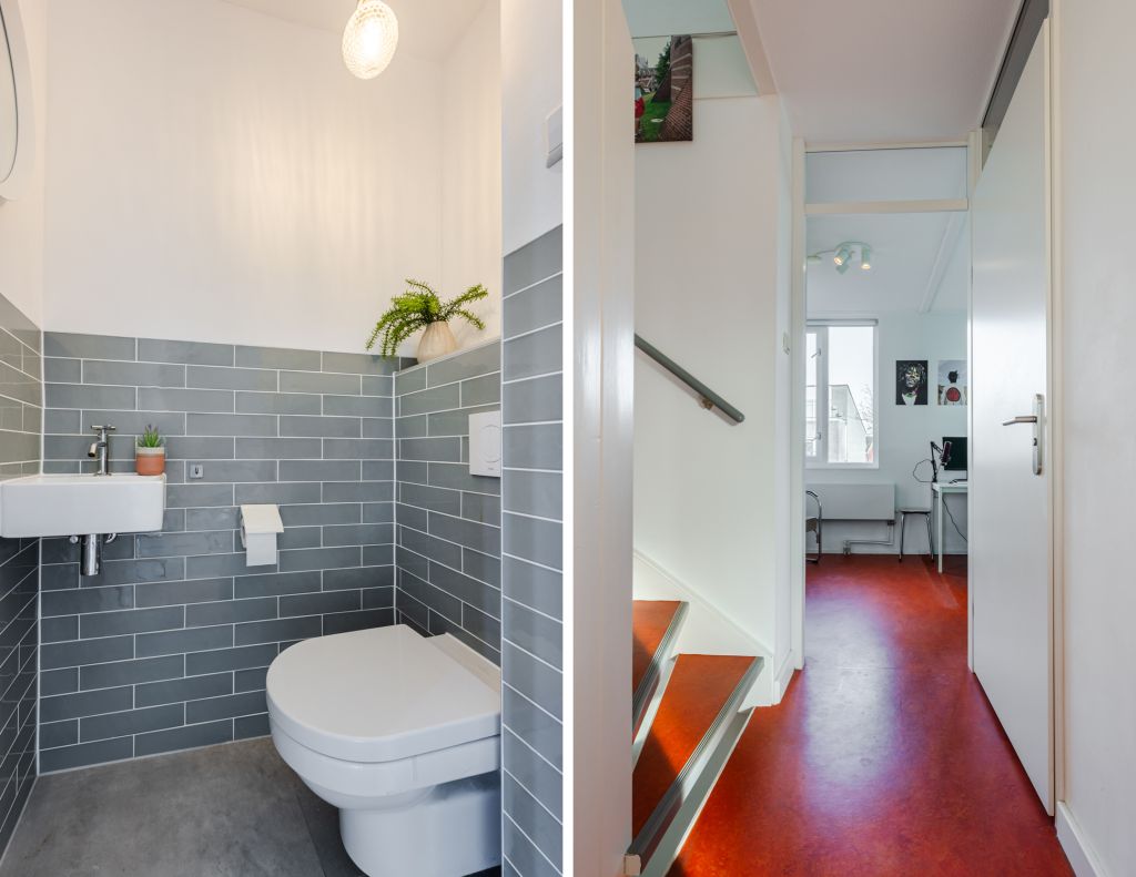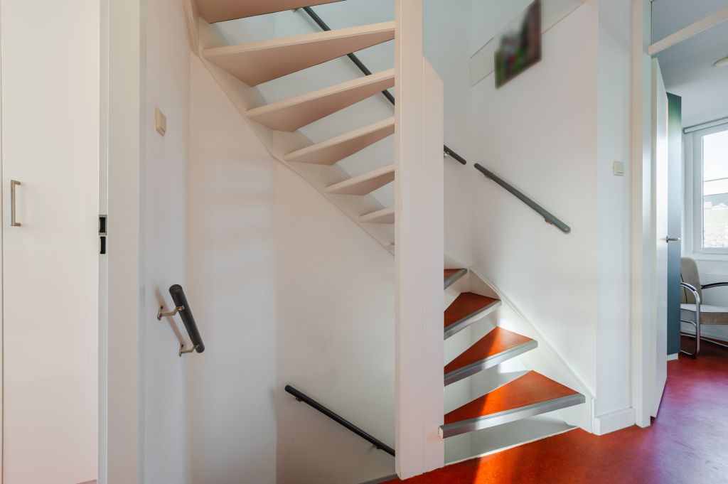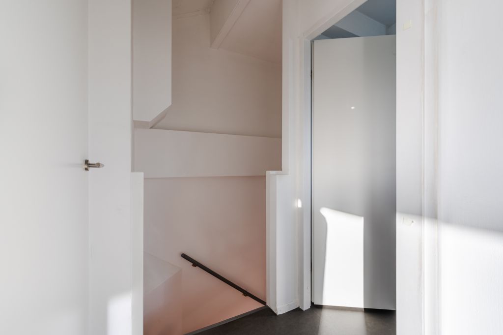 Via de afgesloten centrale hal met bellentableau en brievenbussen, kunt u via de lift of het trappenhuis naar de 5e verdieping.