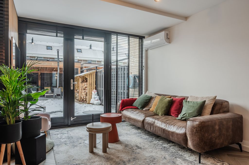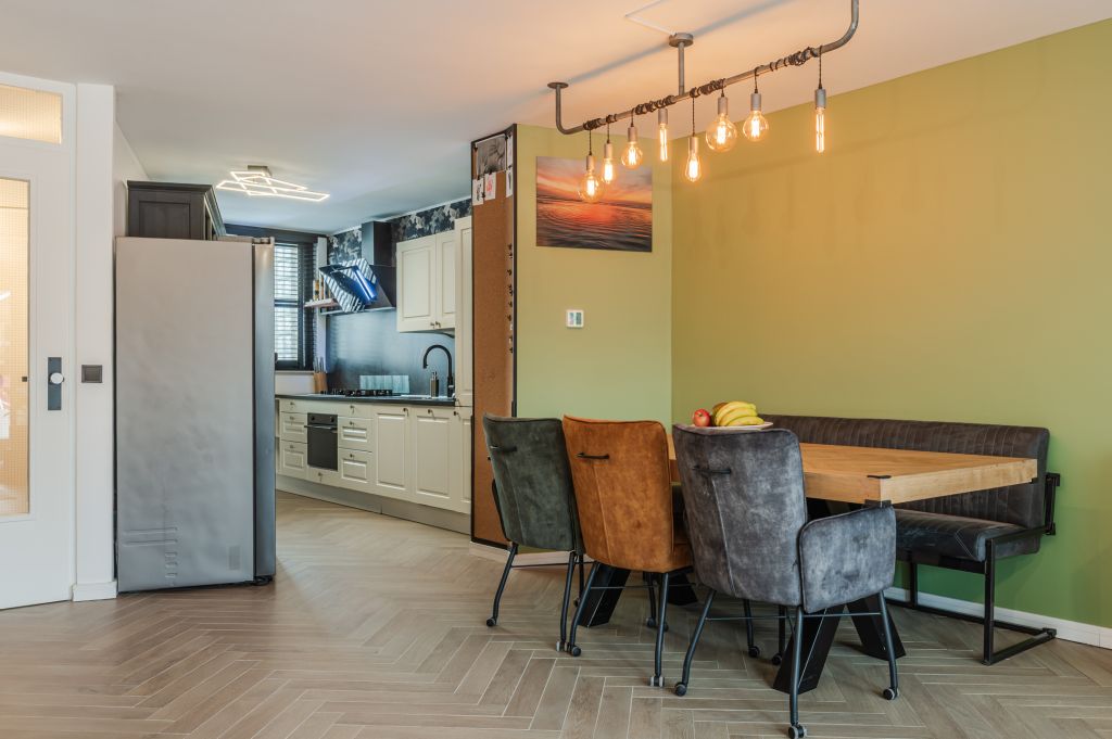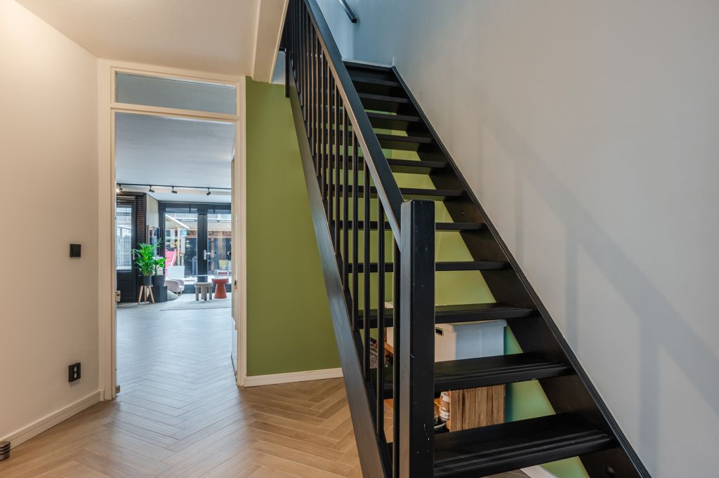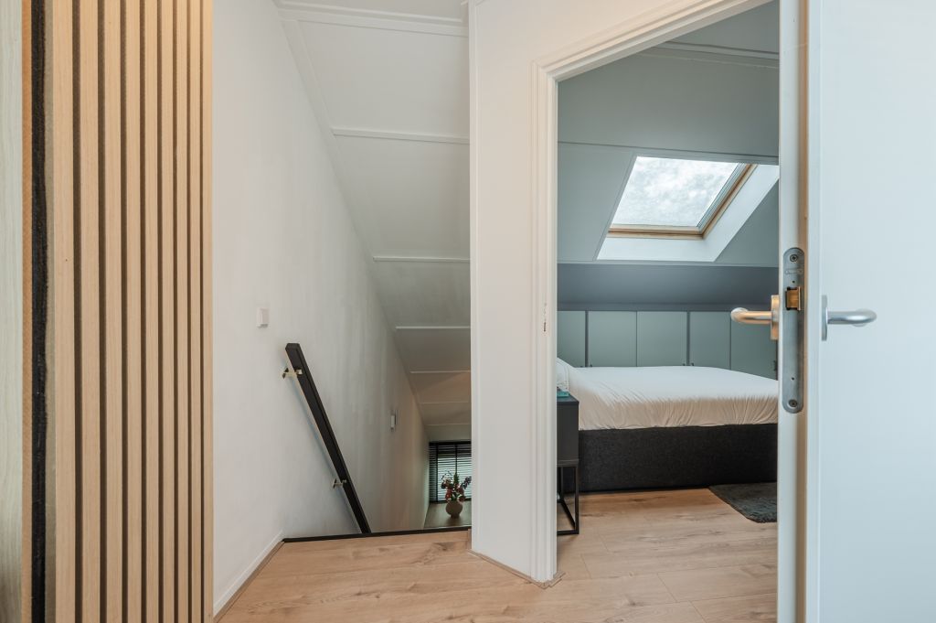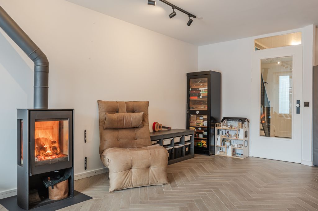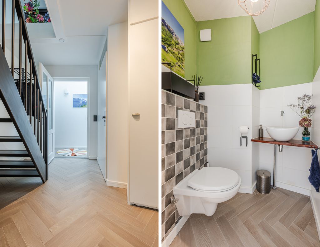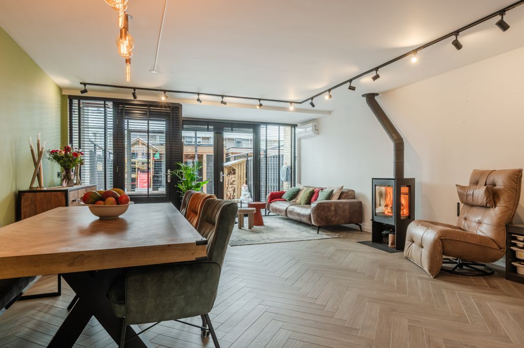 Door de gehele woning liggen grote keramiek tegels. Hoge plinten en een strakke wandafwerking.