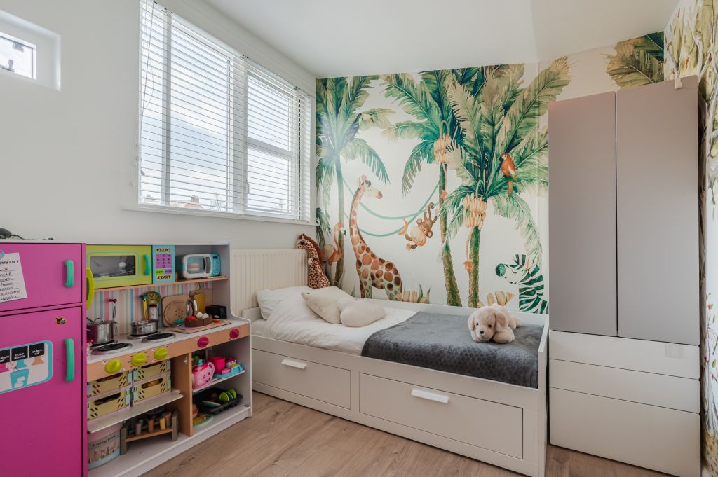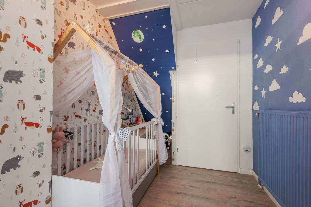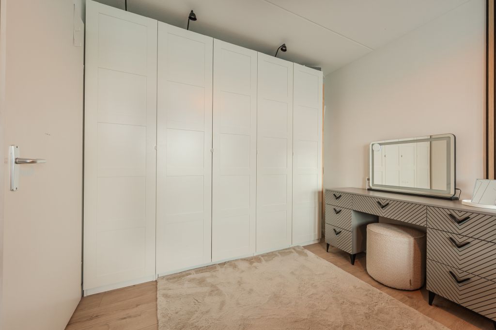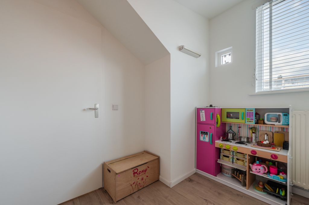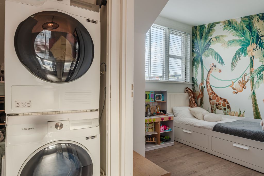 De eerste slaapkamer bevindt zich aan de voorzijde van de woning. Aan de andere zijde van de hal vindt u een aparte was-/bergruimte met de opstelplaats van de CV-ketel, warmte-terug-win installatie en de aansluitingen van de wasmachine en droger. Deze ruimte is ideaal te gebruiken als extra bergruimte.