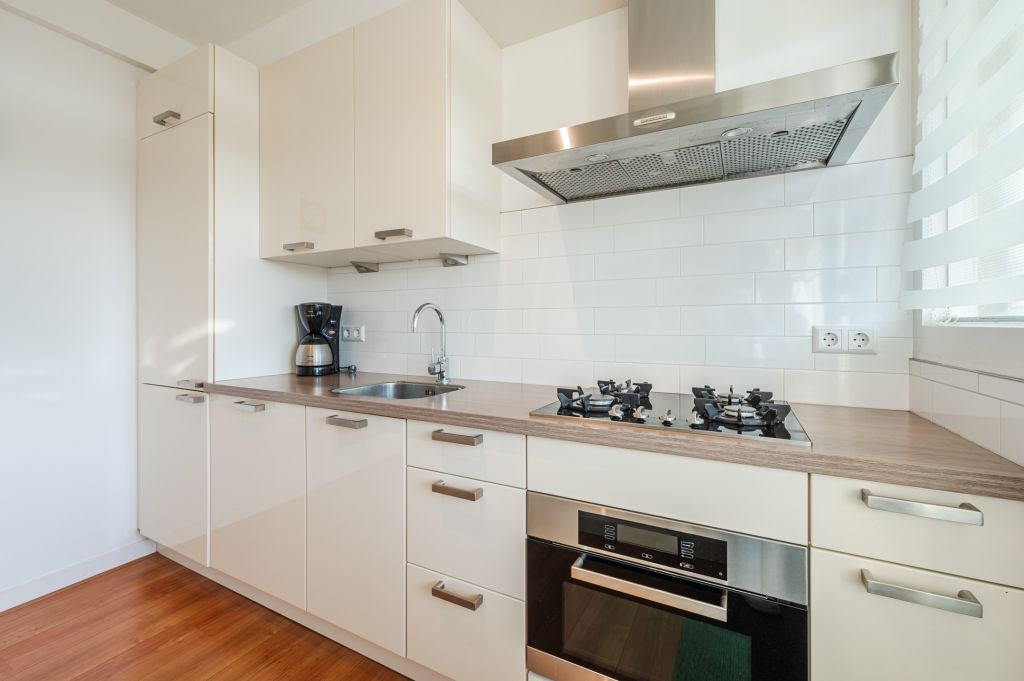 De maisonnette beschikt over een nette entree, met een garderobe en bergruimte. Hal met toegang naar de keuken direct aan je linkerhand, nette trapopgang aan je rechterhand en de woonkamer achter de houten schuifdeur recht voor je. Deze hal heeft een ruime trapkast, volledig betegelde toiletruimte met wandcloset en een mooie laminaatvloer die doorloopt in de woonkamer. De warme houten keukenkasten, donker composiet aanrechtblad en dito plavuizenvloer maken de keuken tot een echte blikvanger. Het grote raam in de keuken zorgt voor veel lichtinval en biedt een leuk uitzicht. Achter de dubbele deuren in de keuken is een was- en bergruimte met de opstelplaats van de cv-ketel aanwezig. De woonkamer is heerlijk licht door de grote raampartij over de volledige breedte van de woning. Het heeft daardoor een prachtig uitzicht op de achtergelegen groenstrook. De woonkamer heeft daarnaast praktische, bijna vierkante afmetingen en heeft een handige inbouwkast.