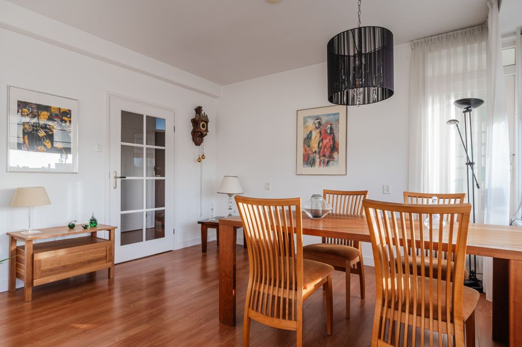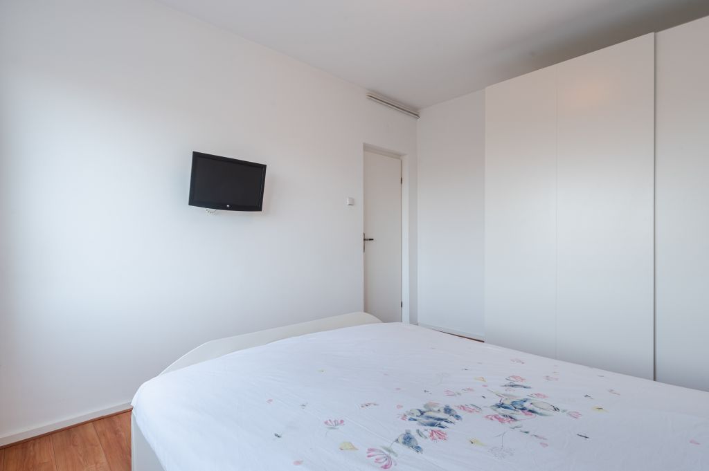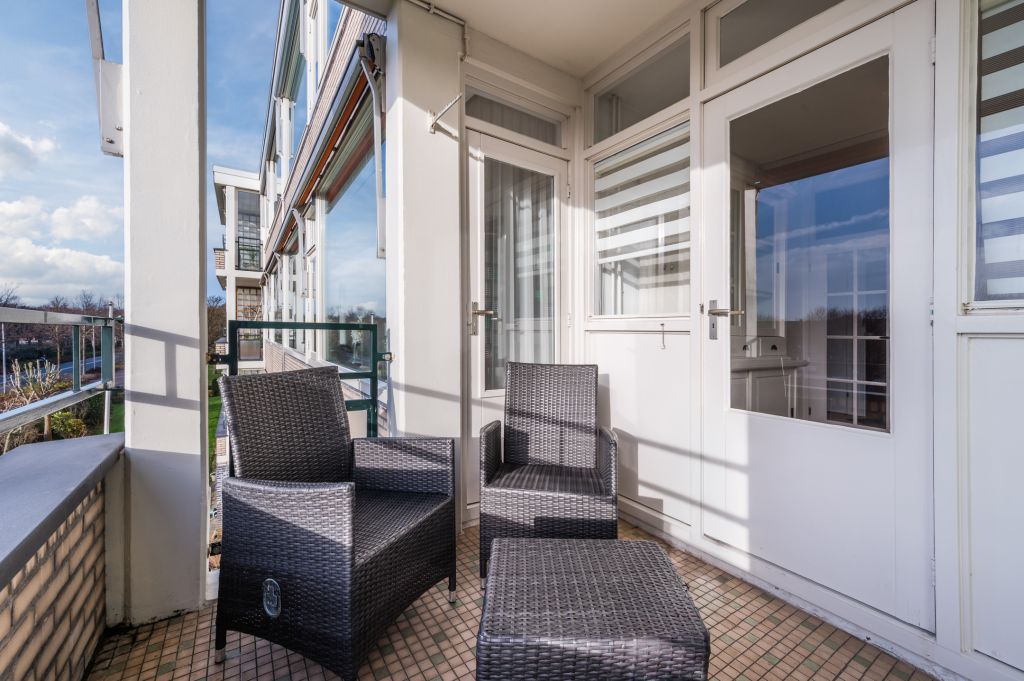 Het balkon ligt over de gehele breedte van het appartement en is vanuit twee slaapkamers toegankelijk. Het balkon is pal op het oosten gelegen. Een heerlijke plek waar je 's ochtends in alle rust kunt genieten van een kop koffie in de zon.