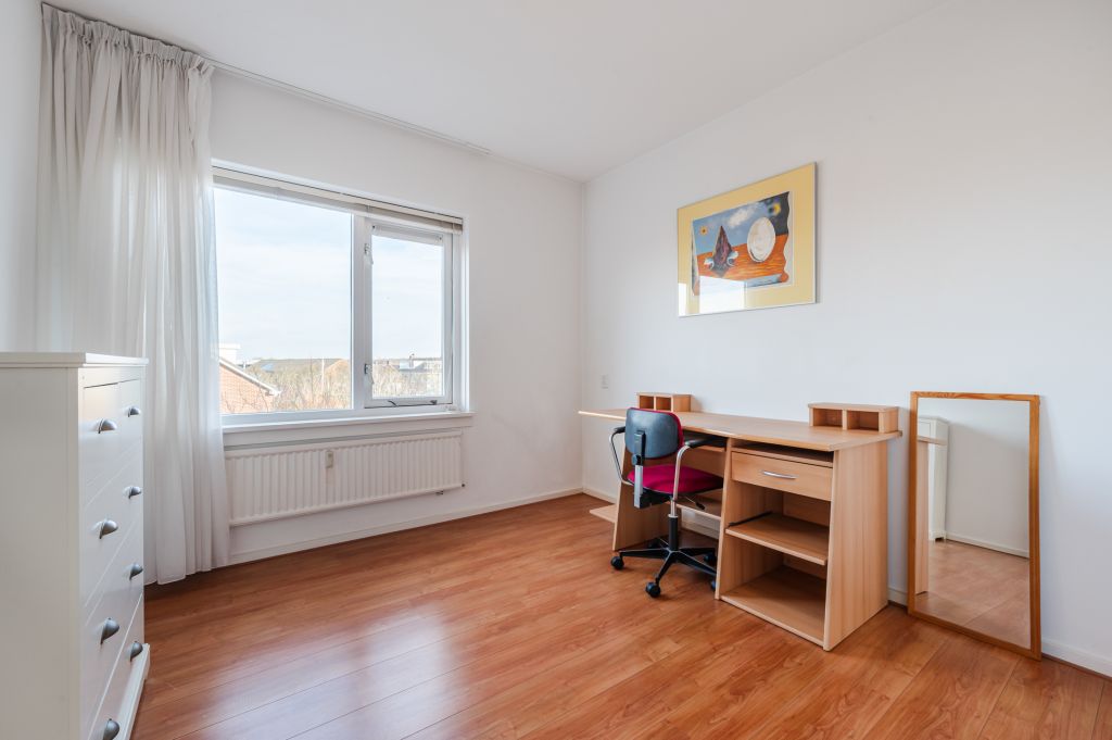 De overloop biedt toegang tot alle slaapkamers en is voorzien van een laminaatvloer die doorloopt in de slaapkamers. De hoofdslaapkamer bevindt zich aan de voorzijde en heeft een inbouwkledingkast met schuifdeuren en een elektrisch rolluik voor de ramen. Aan de achterzijde zijn er 2 ruime slaapkamers die beide toegang geven tot het balkon. De luxe badkamer is vrijwel nieuw en professioneel aangelegd.