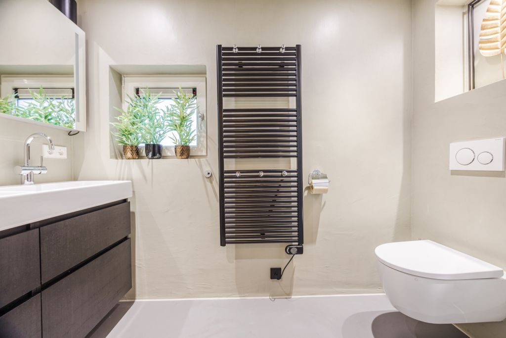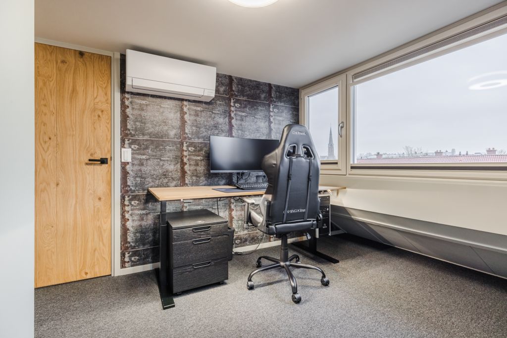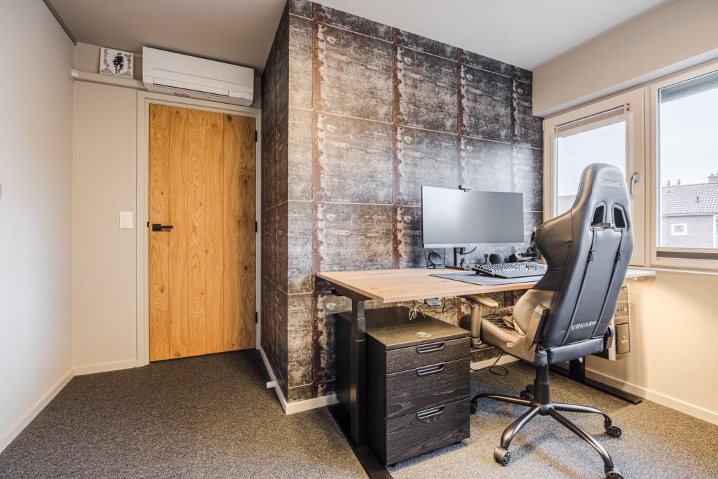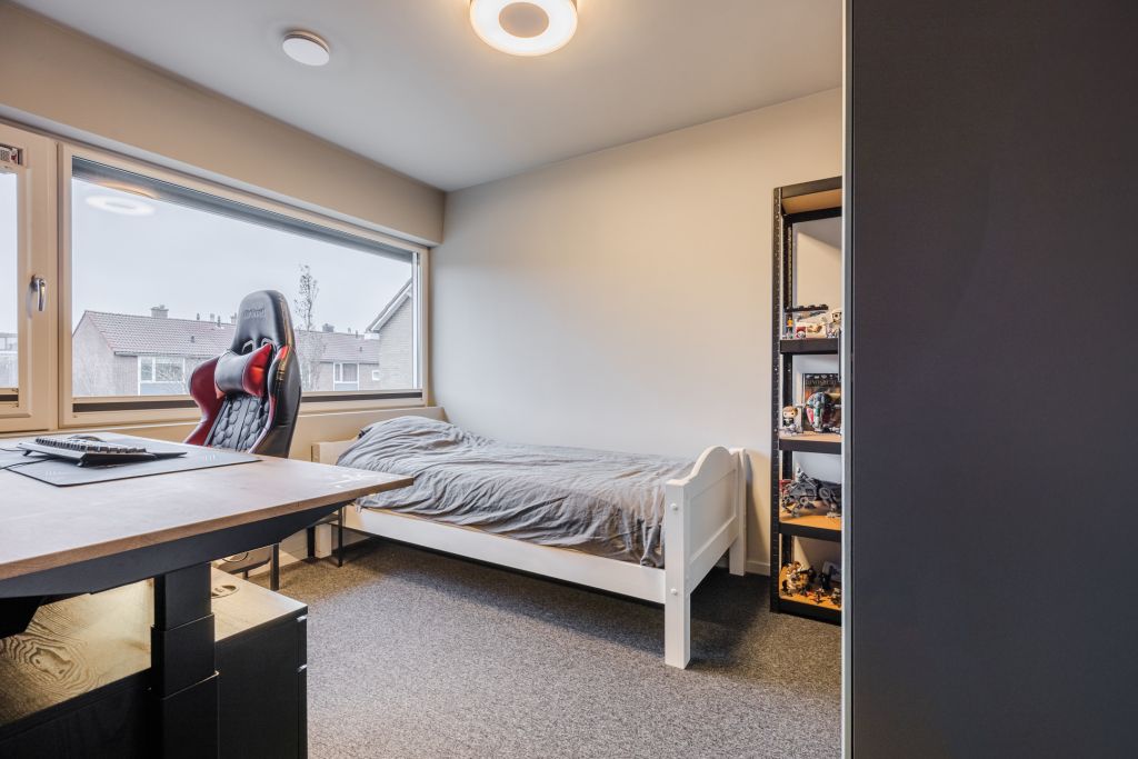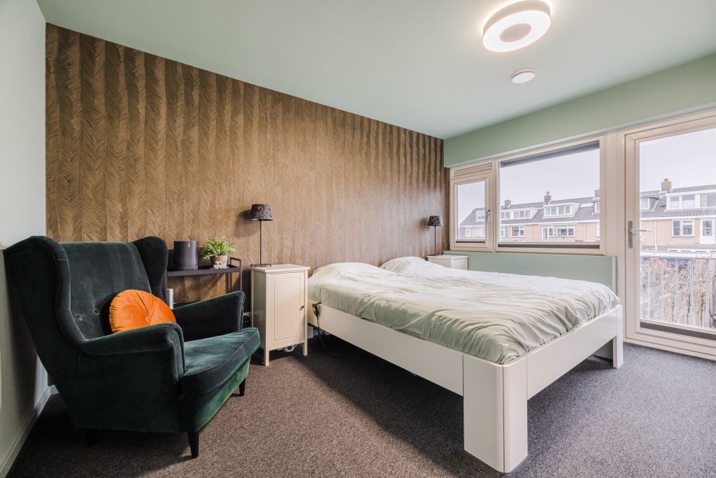 3 slaapkamers, elke slaapkamer is voorzien van een eigen airco unit welke kan verwarmen én koelen. Vanuit de hoofdslaapkamer is er toegang tot een klein balkon. Verder is elke slaapkamer voorzien van elektrisch bedienbare rolluiken, in de kunststof kozijnen geïntegreerde plissés en muggenhorren. Op de overloop een praktische vaste kast en verder aan de voorzijde de vrijwel nieuwe badkamer (2023) met een moderne Beton Ciré afwerking en een praktisch wastafelmeubel, vloerverwarming, designradiator, spiegelkast met verwarming, inloopdouche en een toilet.