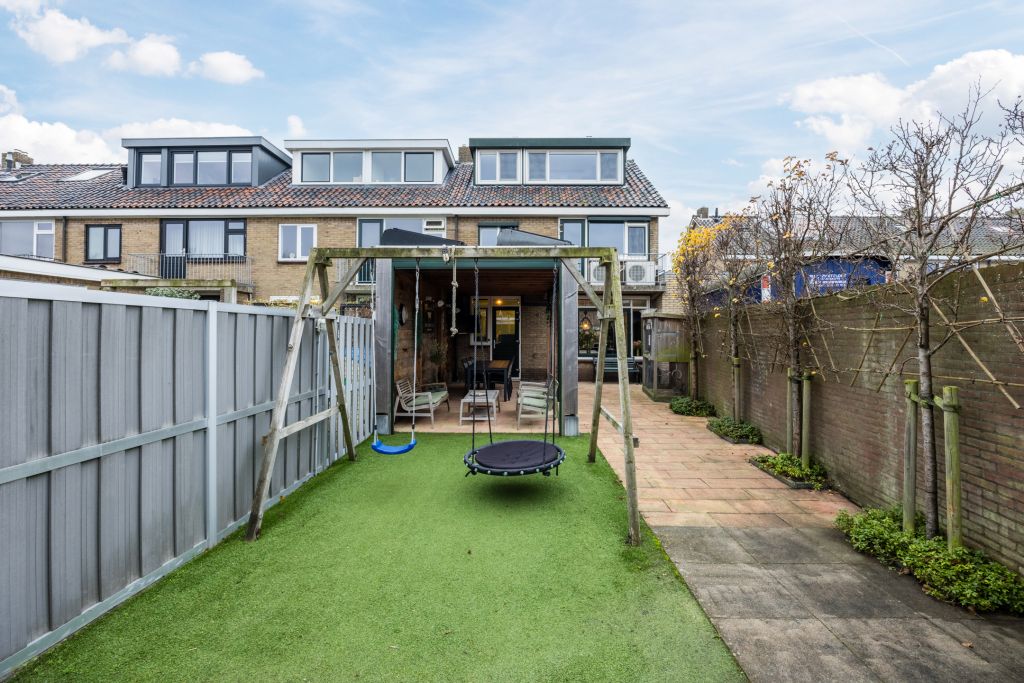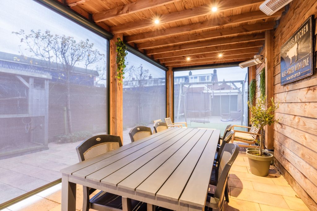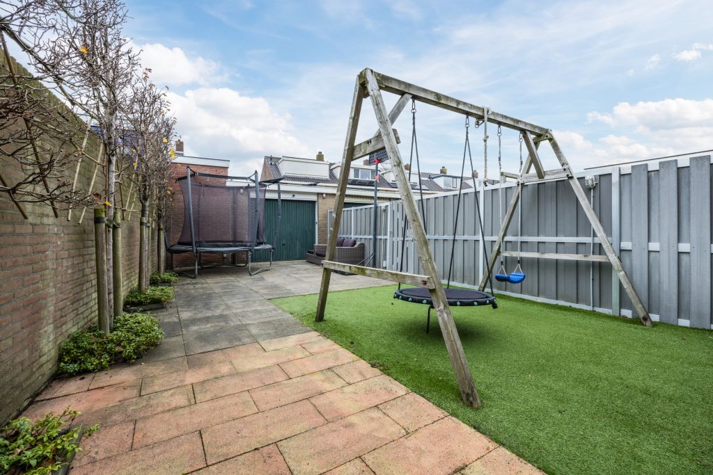 De voortuin is maar liefst 10 meter diep, naast de voortuin heeft u de beschikking over uw eigen oprit met plaats voor 2 auto's. Via het pad naast de woning heeft u een eigen achterom. De achtertuin is zelfs ruim 17 meter diep! Aansluitend aan de woning is er een grote houten veranda met 3 elektrisch bedienbare screens. Achterin de achtertuin is er toegang middels een elektrische garagedeur tot de tweede garage.