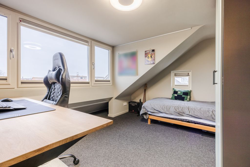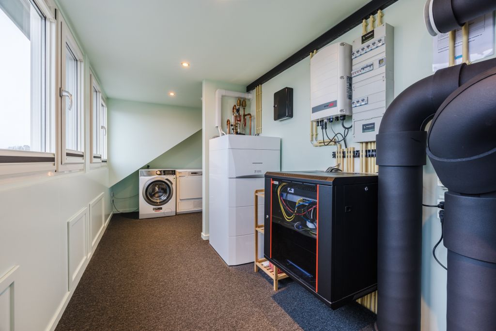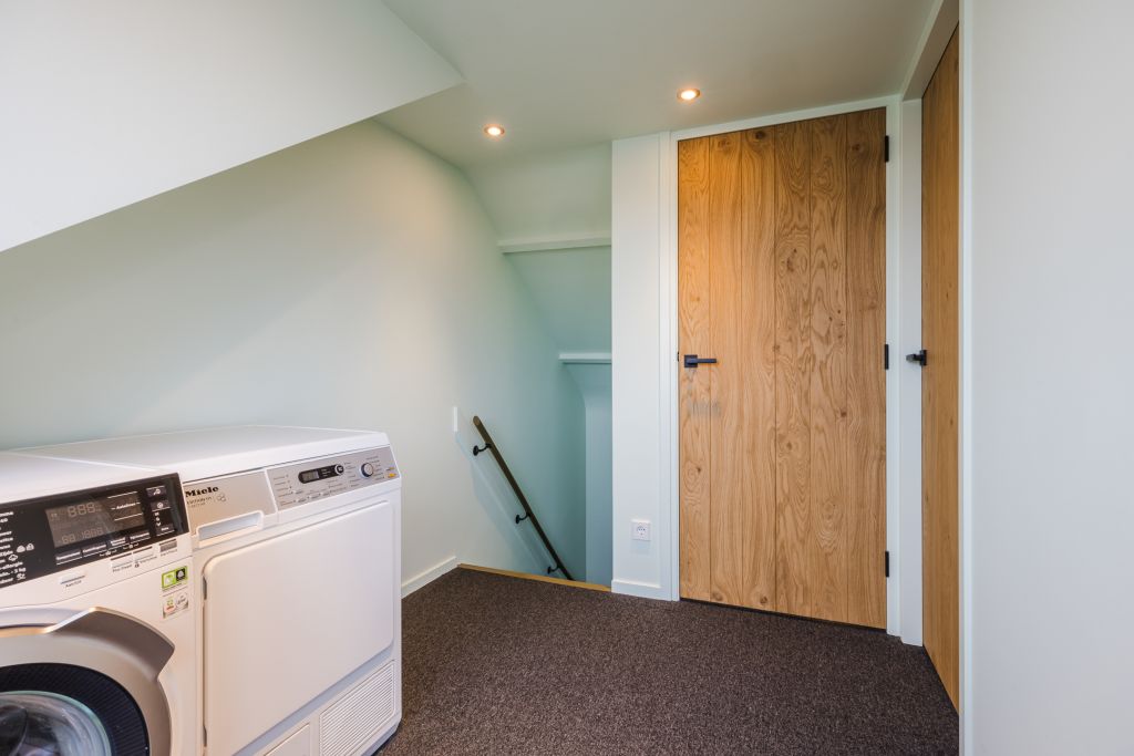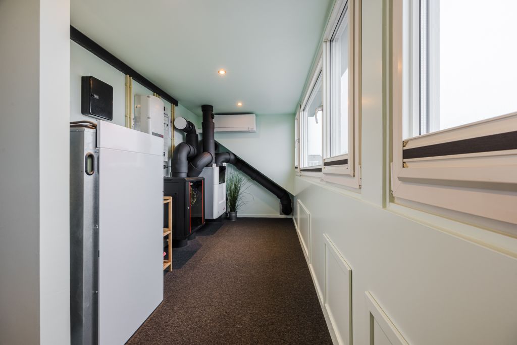 Voorzolder met toegang tot een praktische bergkast. Verder een ruime slaapkamer aan de voorzijde en de technische ruimte aan de achterzijde. Hier staan de wasmachine en droger opgesteld alsmede de warmtepomp, wtw unit en de patchkast voor de ICT.